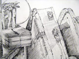 - Do not outline your subjects with heavy ink lines-- rather, the edges of your objects will be defined by value, by degrees of lightness and darkness. Remember to carefully construct value-- paying attention to the parts of value as discussed in class, and reflecting that understanding with a varying density in your cross-hatched lines.